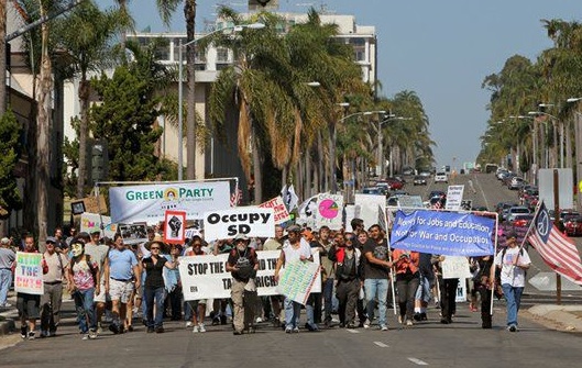 Green Party of San Diego members march at Occupy San Diego on 10/15/11.