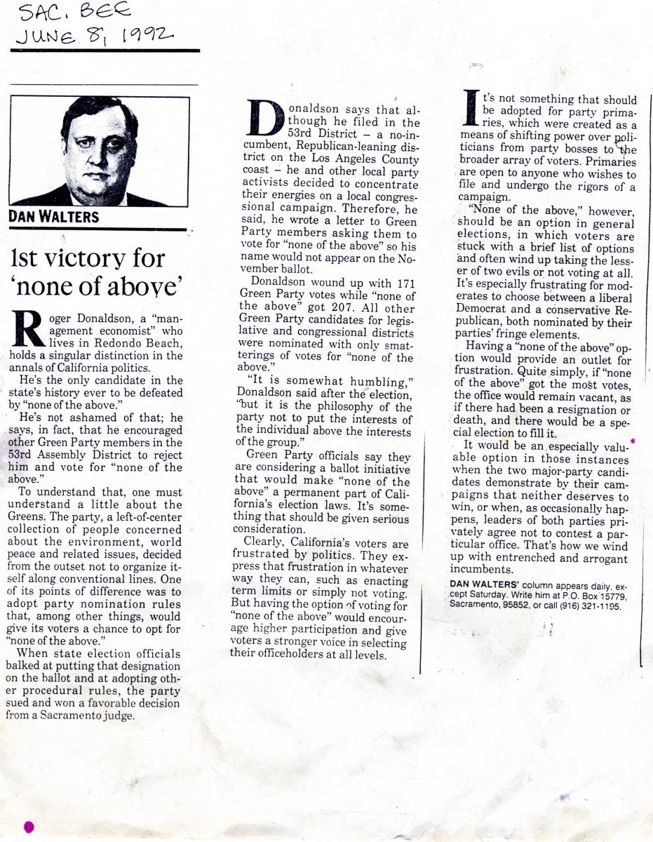 Roger Donaldson, None-of-the-Above